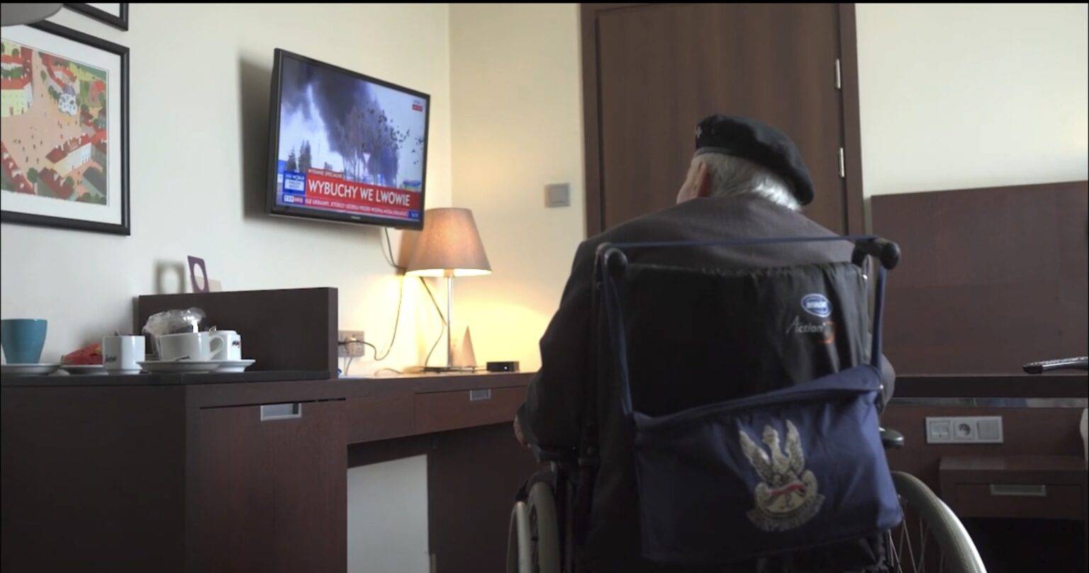 Pułkownik Hulacki w pokoju hotelowym ogląda relacje z ogarniętej obecnie wojną Ukrainy, w tym swojego Lwowa. Rozpoznaje miejsca uderzone rosyjskimi rakietami. Ze smutkiem patrzy na obrazy wojny współcześnie dziejącej się na Ukrainie.